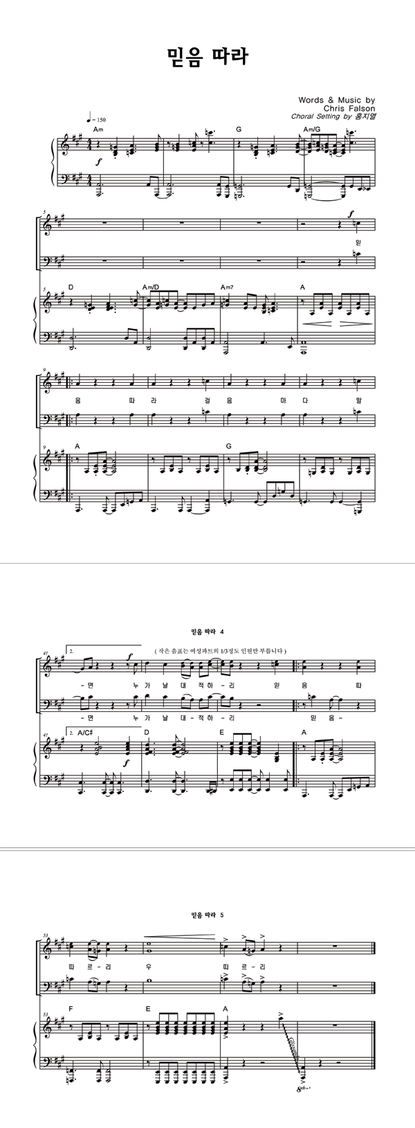 | 주의 신을 내가 떠나 | 성가 4부 + 피아노 반주 |