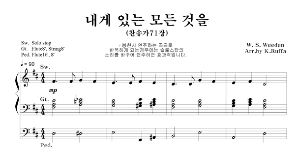 | 내 주 되신 주를 참 사랑하고 (찬송가 315장) | 성가 4부 + 피아노 반주 |