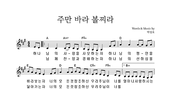 | 주만 바라볼지라 | 성가 2부 + 피아노 반주 |