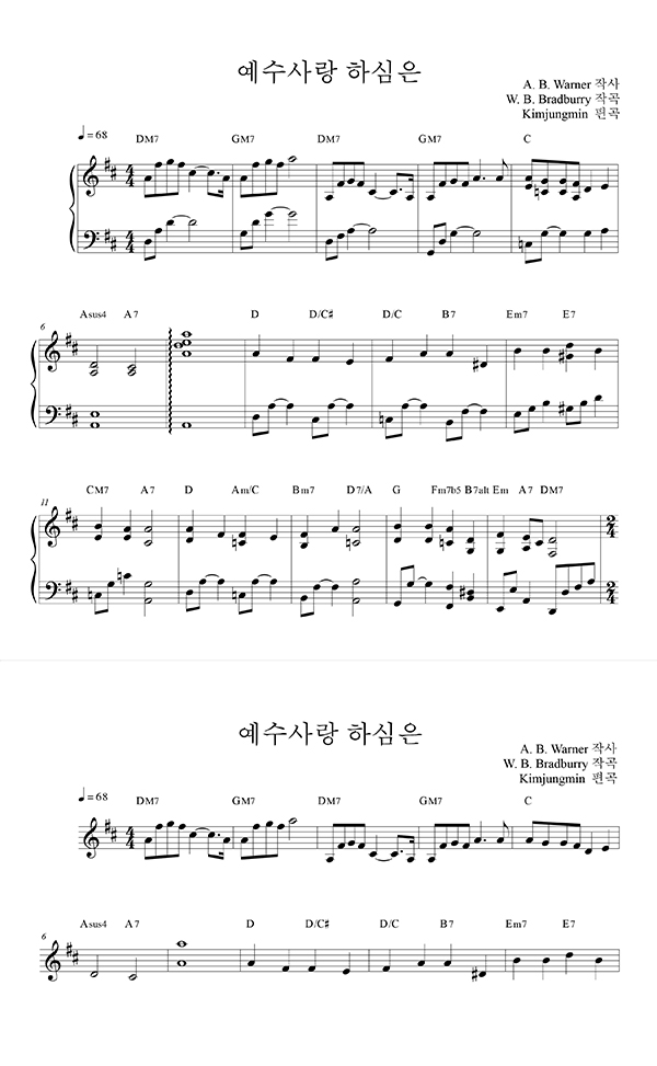 | 낮엔 해처럼 밤엔 달처럼 | 성가 2부 + 피아노 반주 |