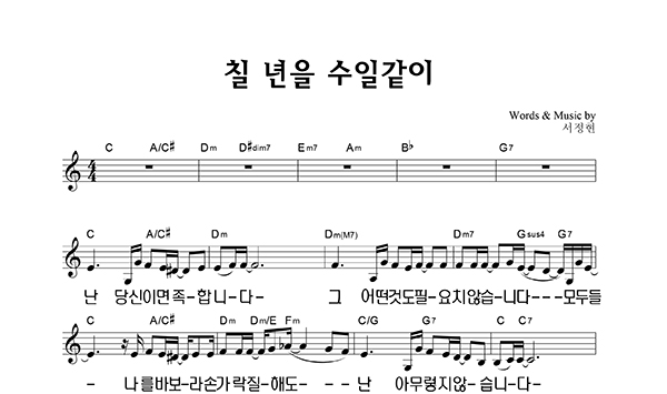 | 칠 년을 수일같이 큰글씨 | 단선 |