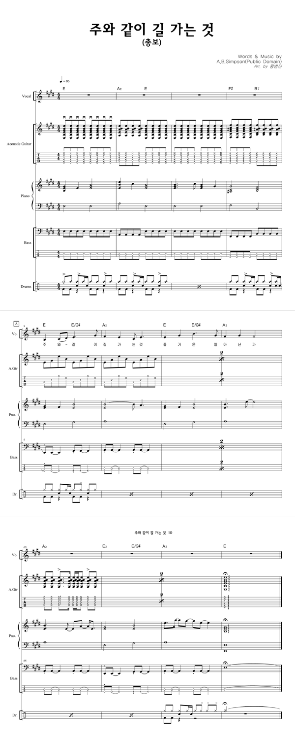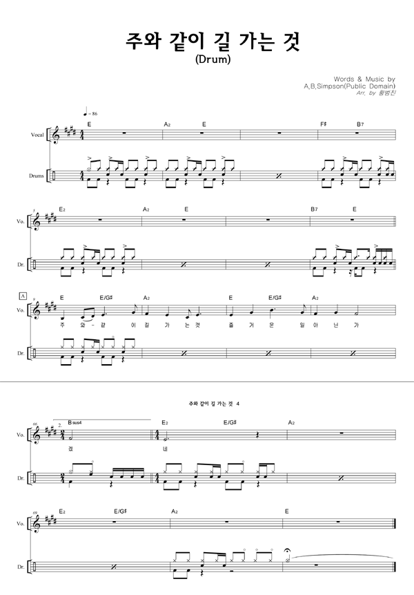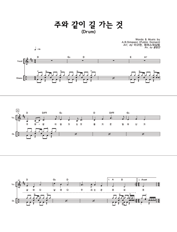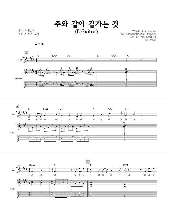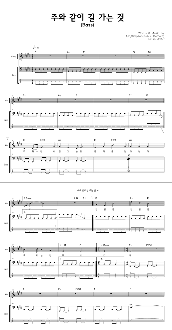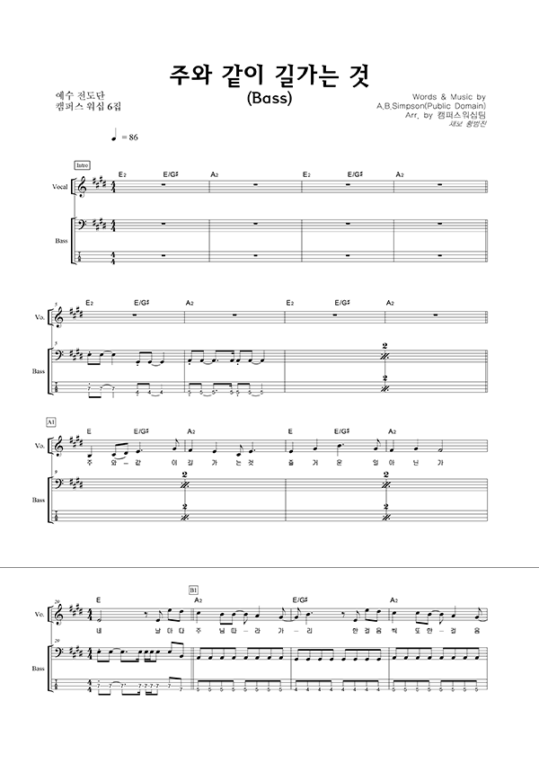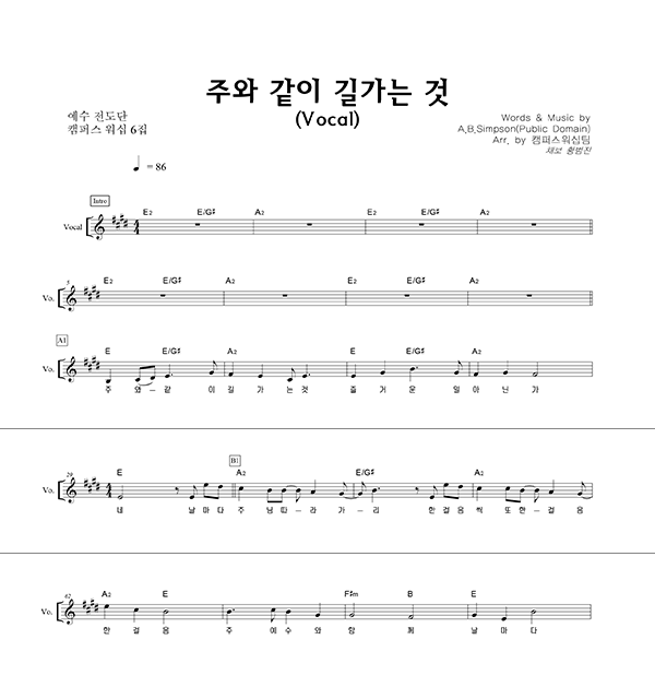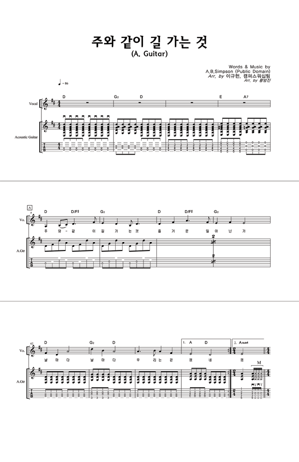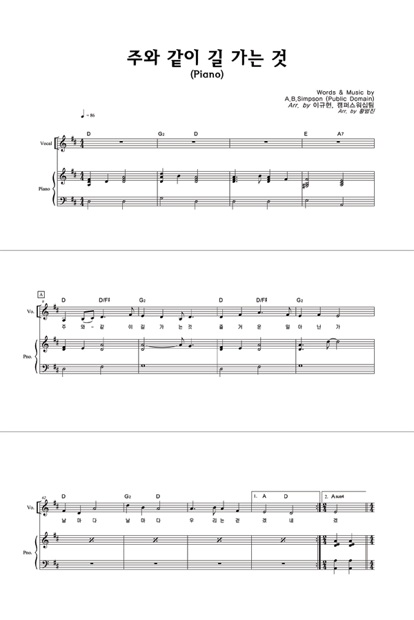 '주와 같이 길 가는 것 (이규헌 편곡)' 의 다른 악보형식