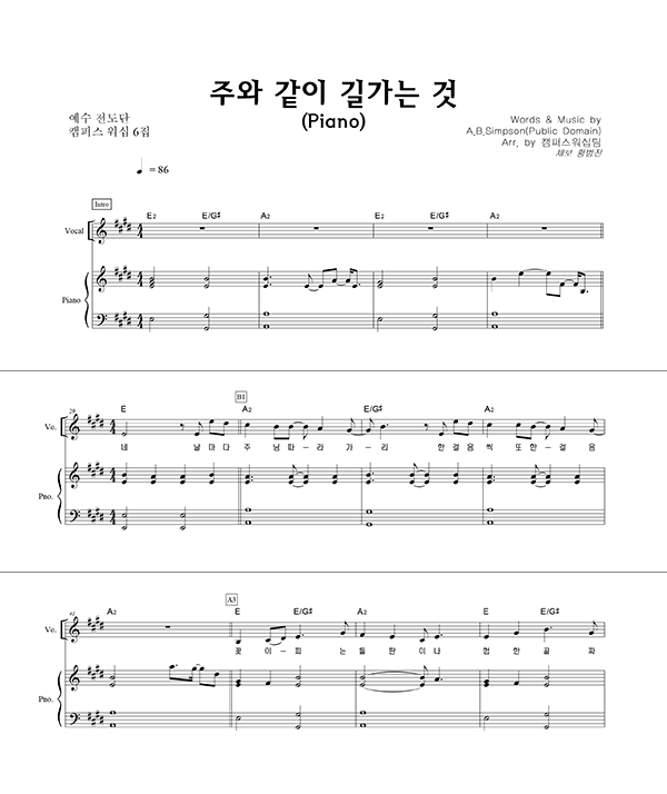 | 주와 같이 길 가는 것 (이규헌 편곡) 큰글씨 | 성가 3부 + 피아노 반주 |