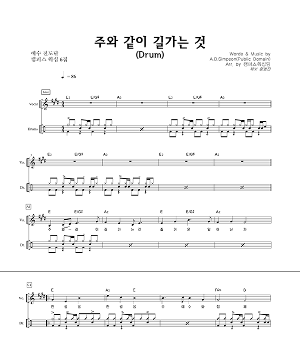 | 주와 같이 길 가는 것 (이규헌 편곡) 큰글씨 | 성가 2부 + 피아노 반주 |