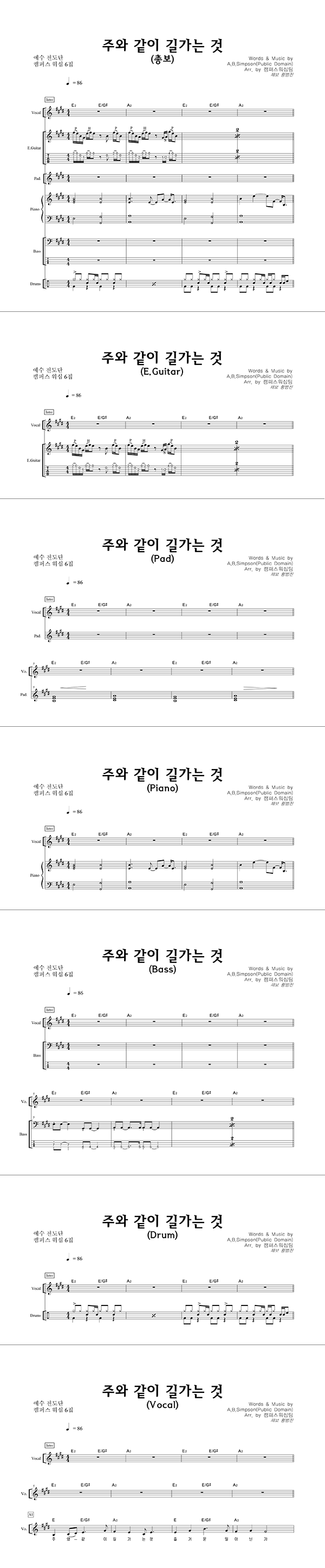 | 주와 같이 길 가는 것 (이규헌 편곡) | 성가 4부 + 피아노 반주 |