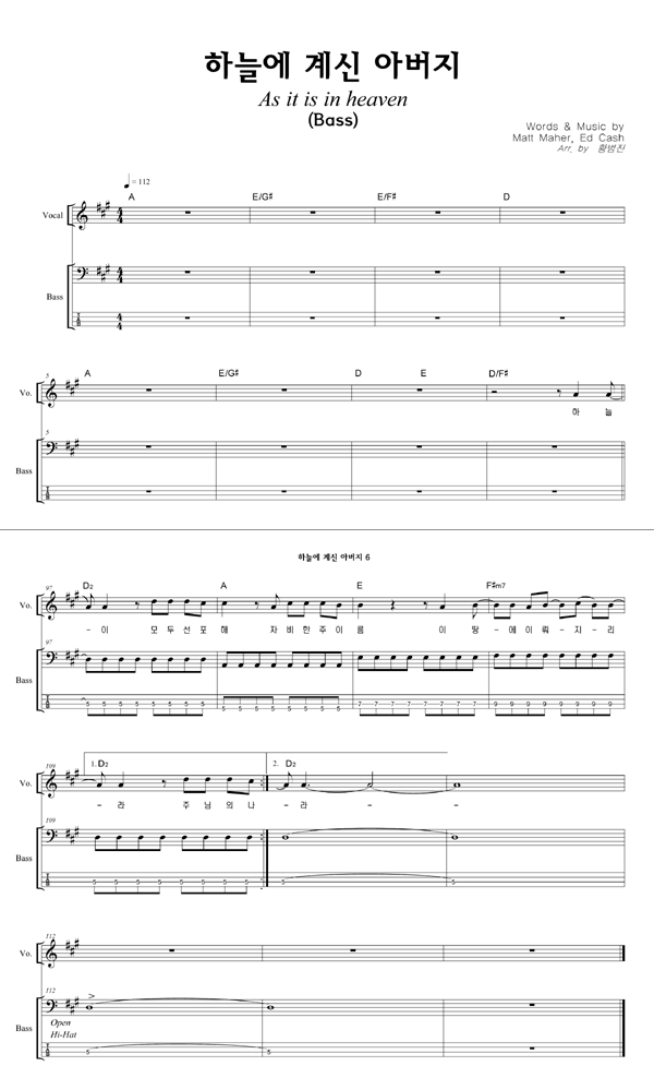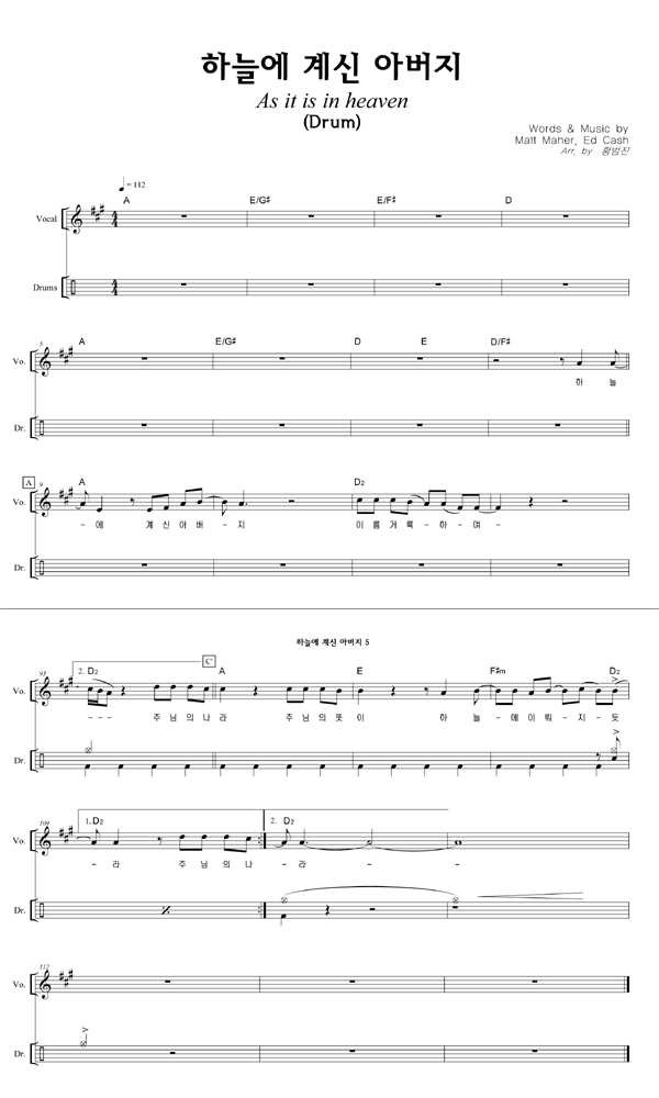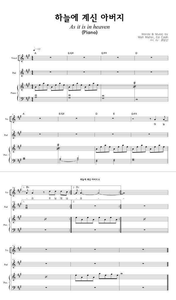 '하늘에 계신 아버지' 의 다른 악보형식