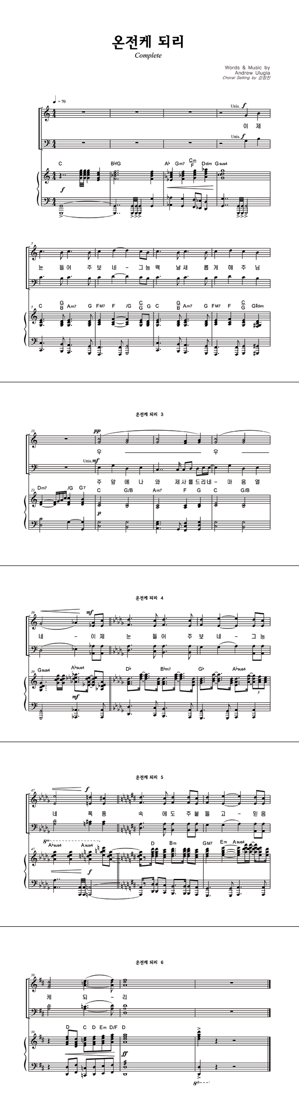 한라에서 백두까지 백두에서 땅 끝까지 | 성가 4부 + 피아노 반주 |