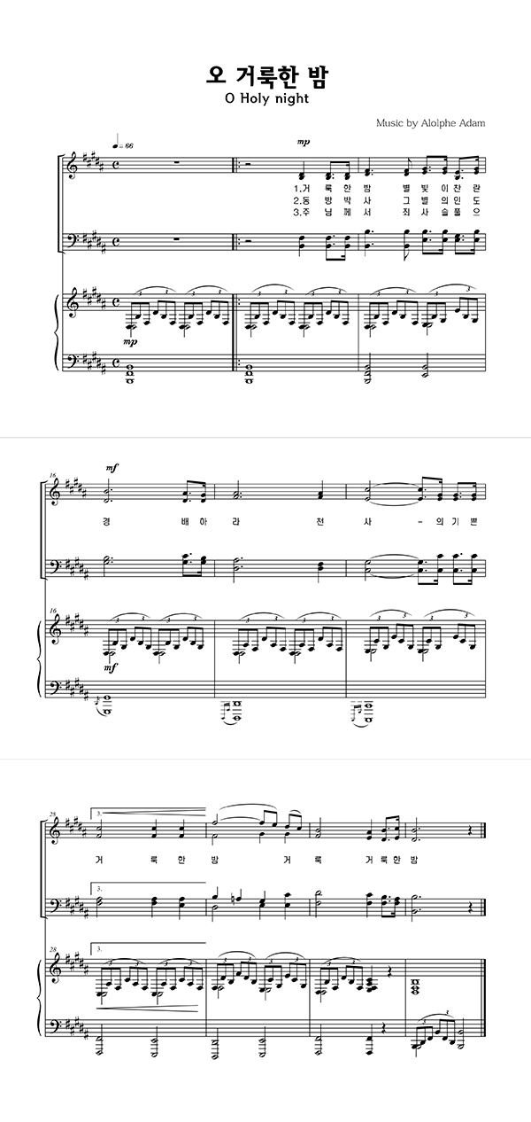 | 오 거룩한 밤 | 성가 4부 + 피아노 반주 |