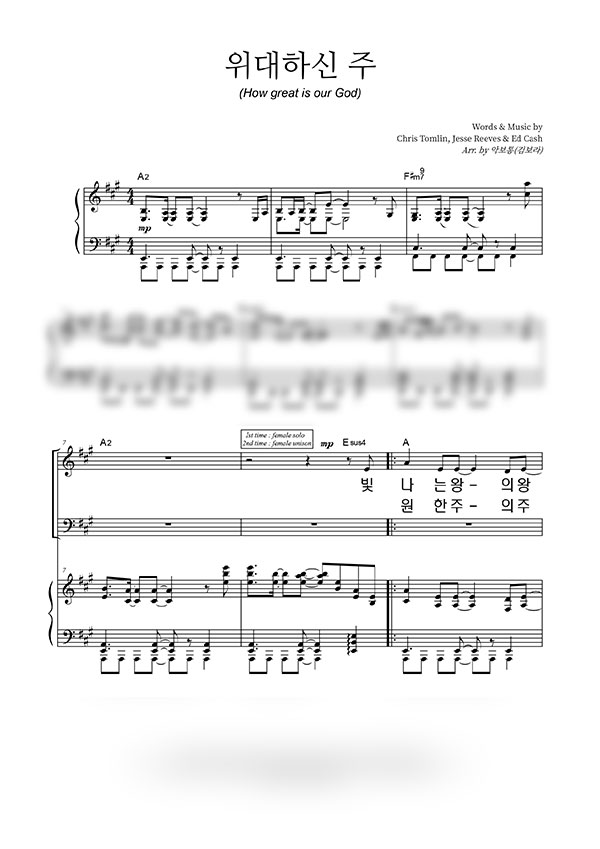 | 위대하신 주 | 성가 3부 + 피아노 반주 |