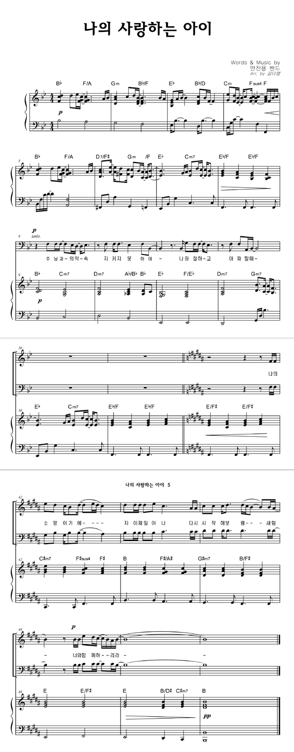 | 나의 사랑하는 아이 | 성가 3부 + 피아노 반주 |