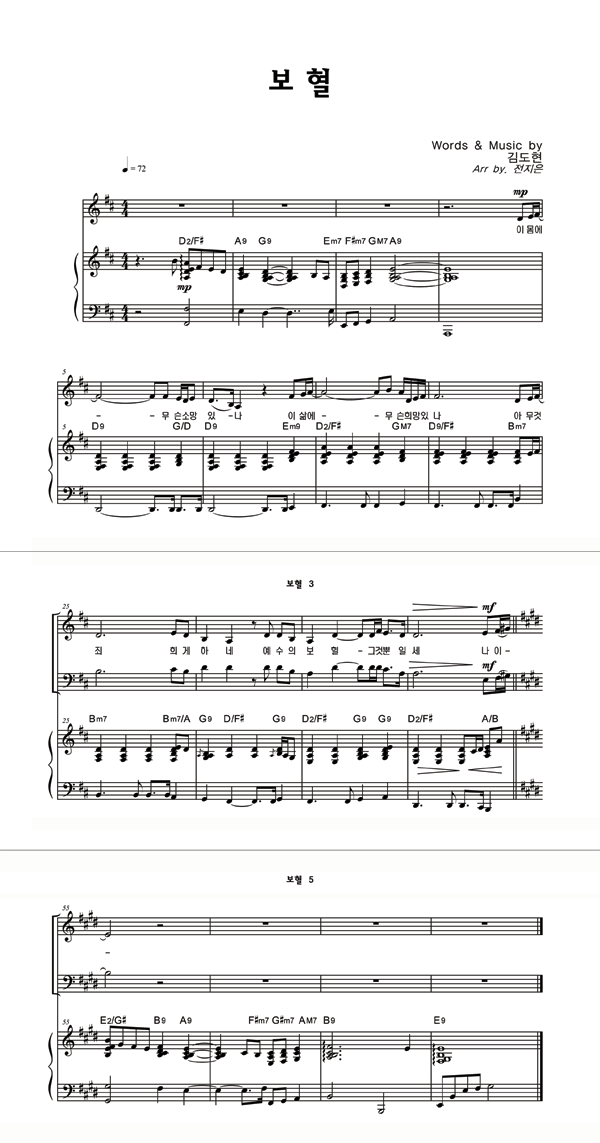 | 보혈 | 성가 3부 + 피아노 반주 |
