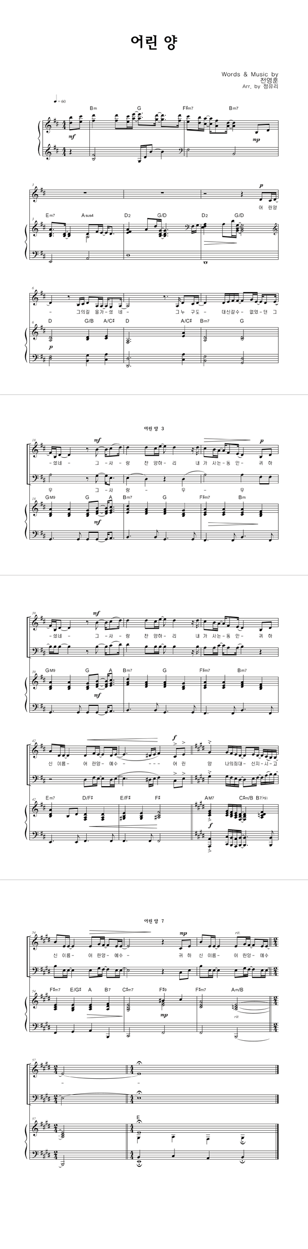| 어린 양 | 성가 4부 + 피아노 반주 |