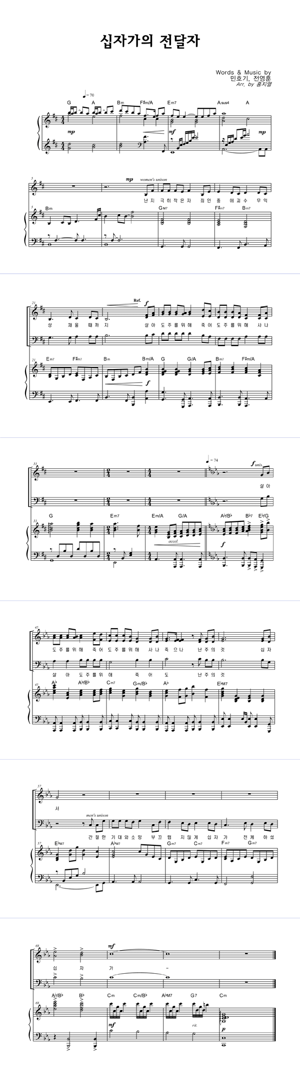 | 십자가의 전달자 | 성가 2부 + 피아노 반주 |