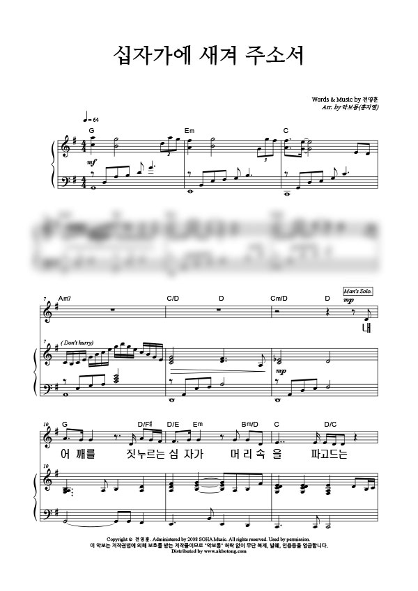| 십자가에 새겨주소서 | 성가 2부 + 피아노 반주 |