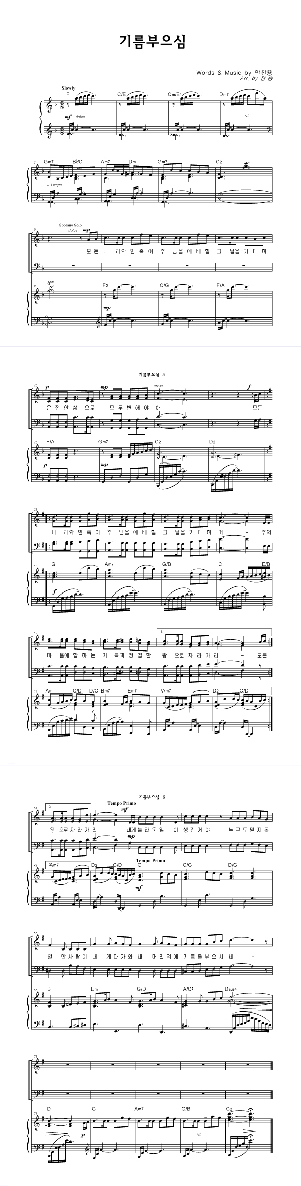 | 기름 부으심 | 성가 2부 + 피아노 반주 |