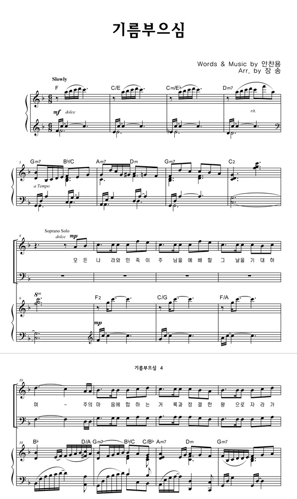 | 기름 부으심 | 성가 4부 + 피아노 반주 |