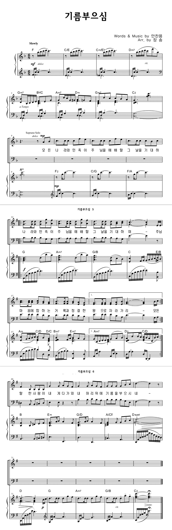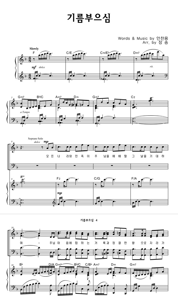 | 기름 부으심 | 성가 3부 + 피아노 반주 |