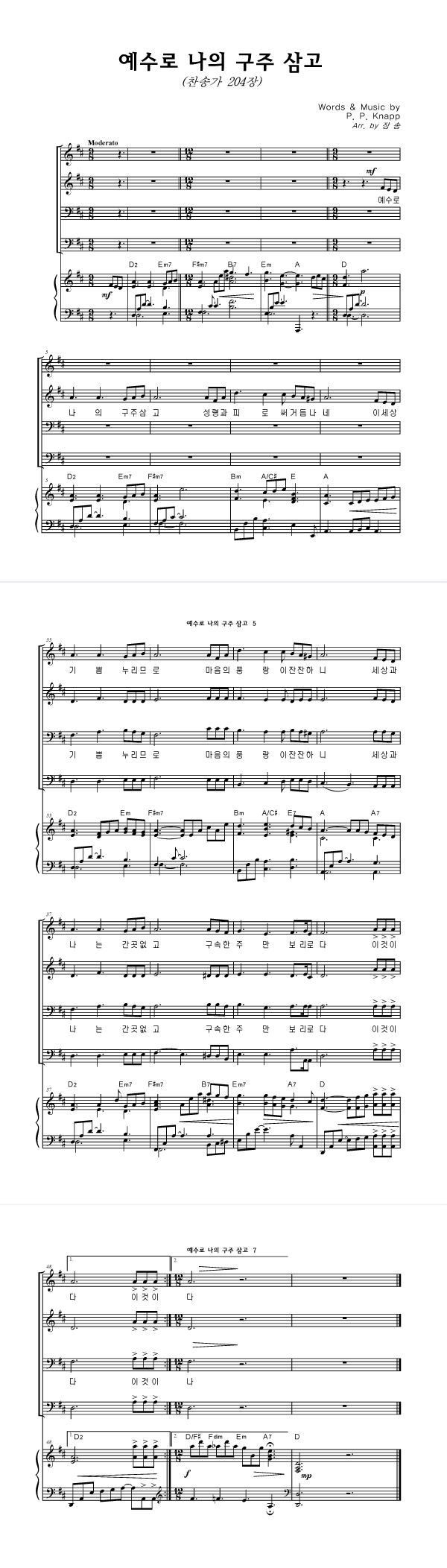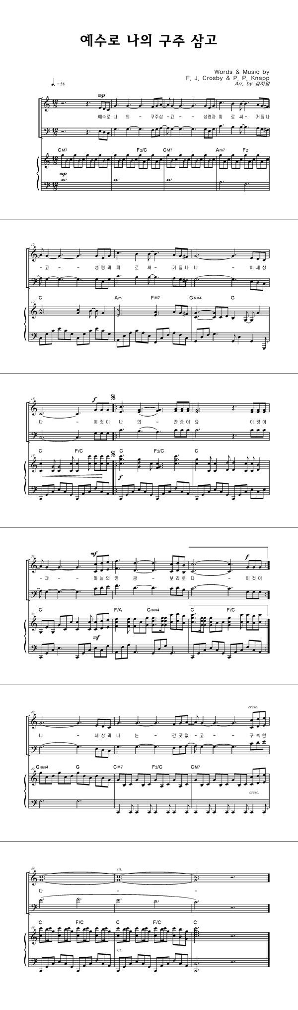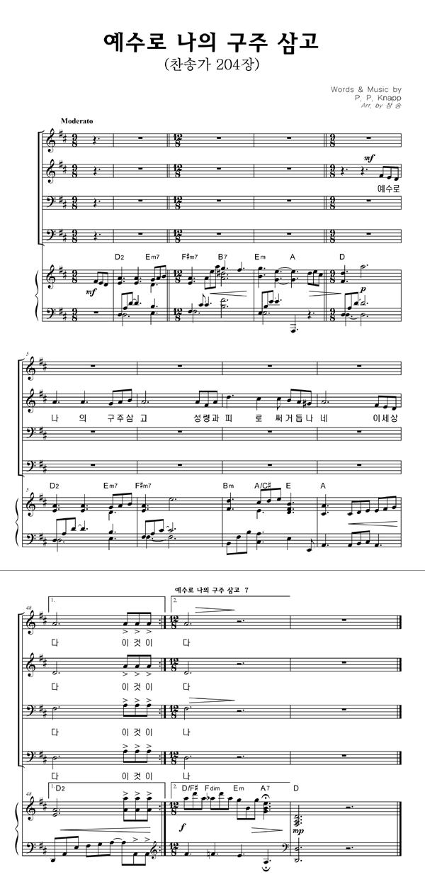 | 예수로 나의 구주 삼고 | 성가 4부 + 피아노 반주 |