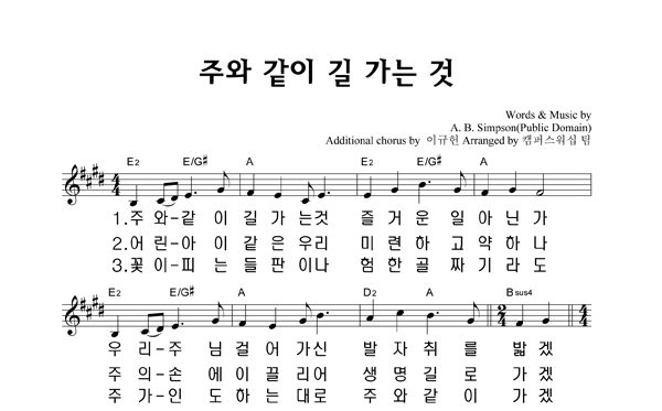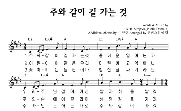 | 주와 같이 길 가는 것 (이규헌 편곡) 큰글씨 | 성가 4부 + 피아노 반주 |