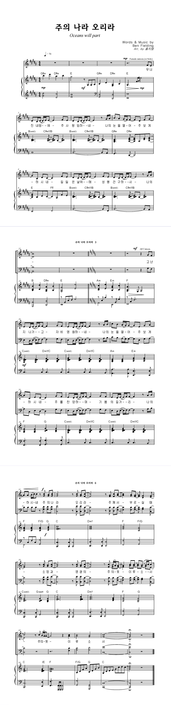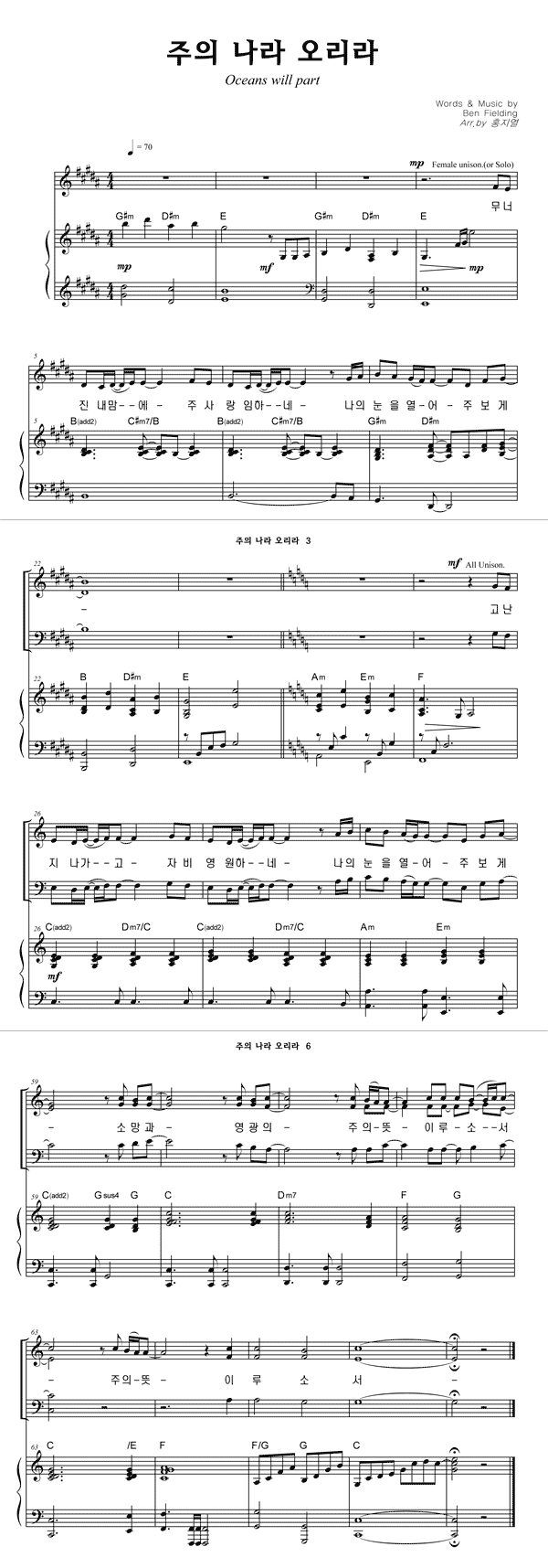 | 주의 나라 오리라 | 성가 3부 + 피아노 반주 |