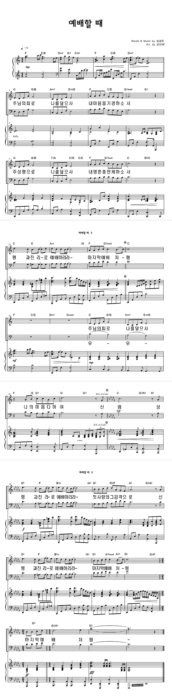| 예배 할 때 | 성가 3부 + 피아노 반주 |
