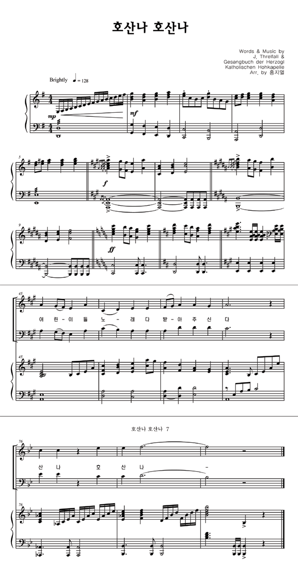 | 호산나 호산나 | 성가 3부 + 피아노 반주 |