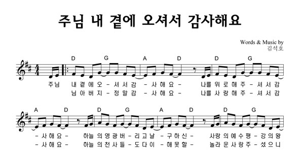 | 주님 내 곁에 오셔서 감사해요 | 단선 |