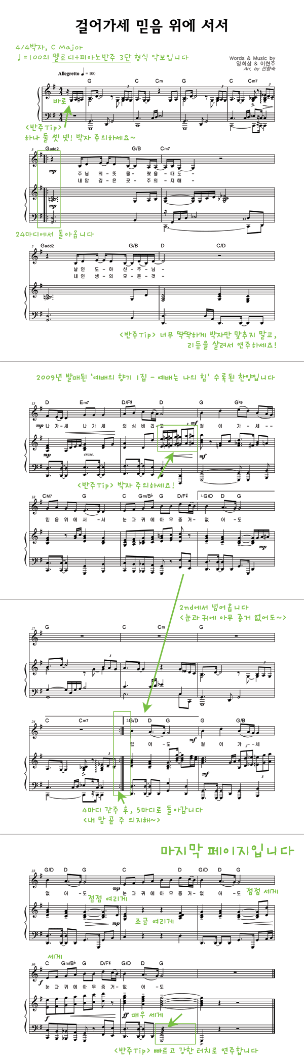 | 예배는 나의 힘 | 성가 2부 + 피아노 반주 |