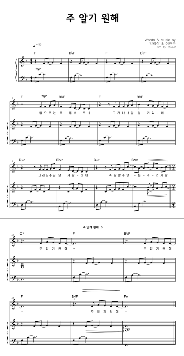 | 예배는 나의 힘 | 성가 2부 + 피아노 반주 |