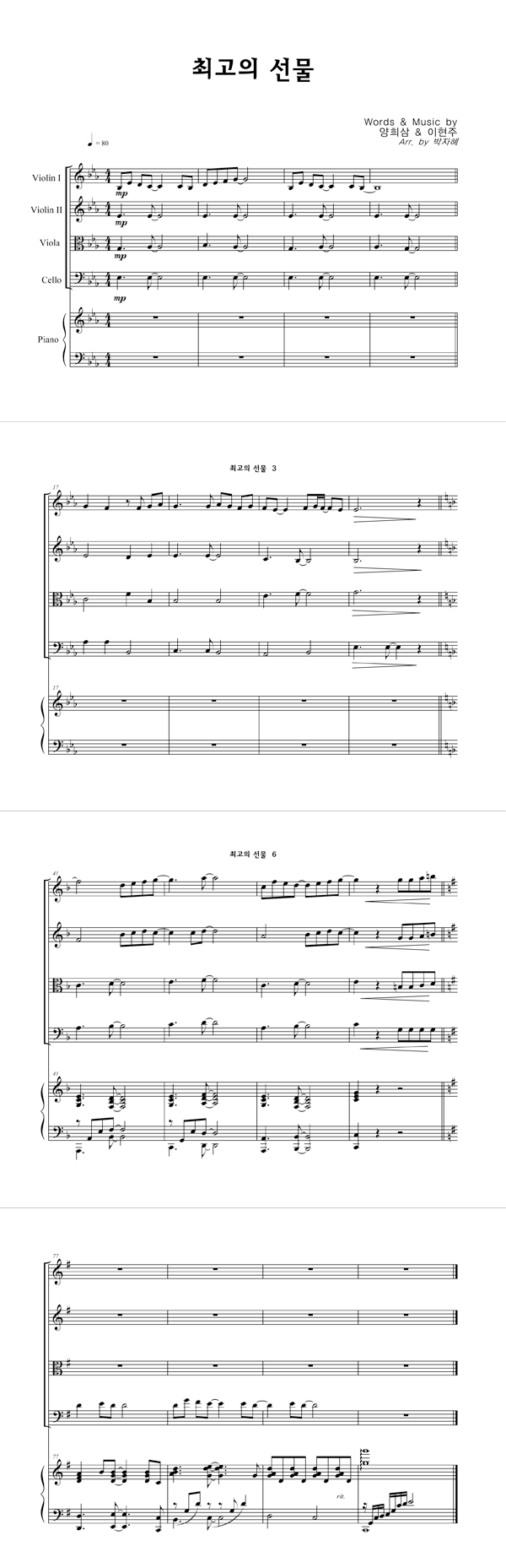 '최고의 선물' 의 다른 악보형식