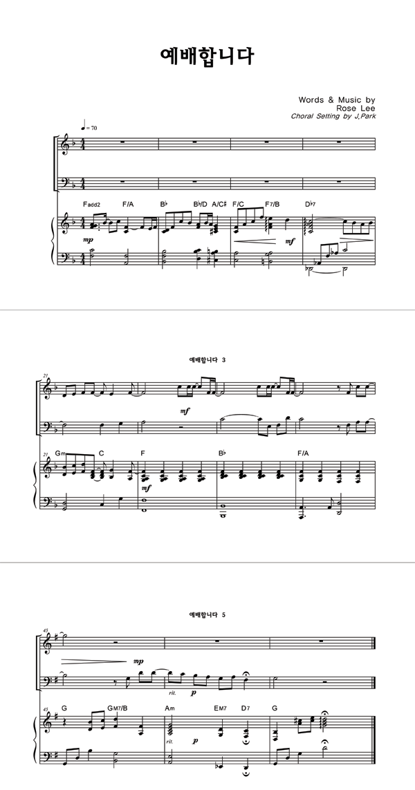 | 예배합니다 | 성가 3부 + 피아노 반주 |
