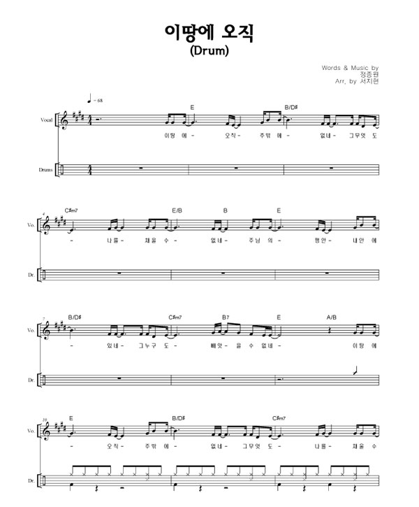 '이 땅에 오직' 의 다른 악보형식