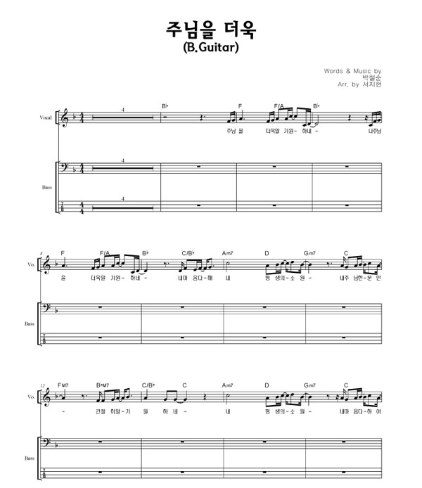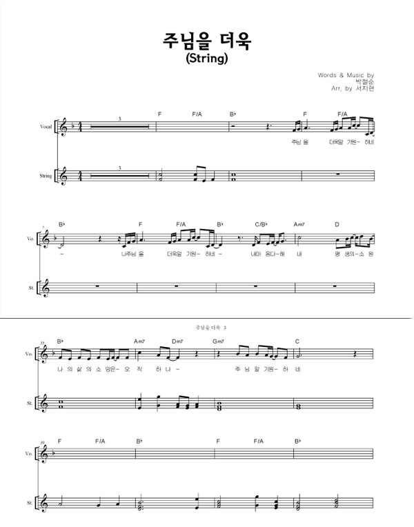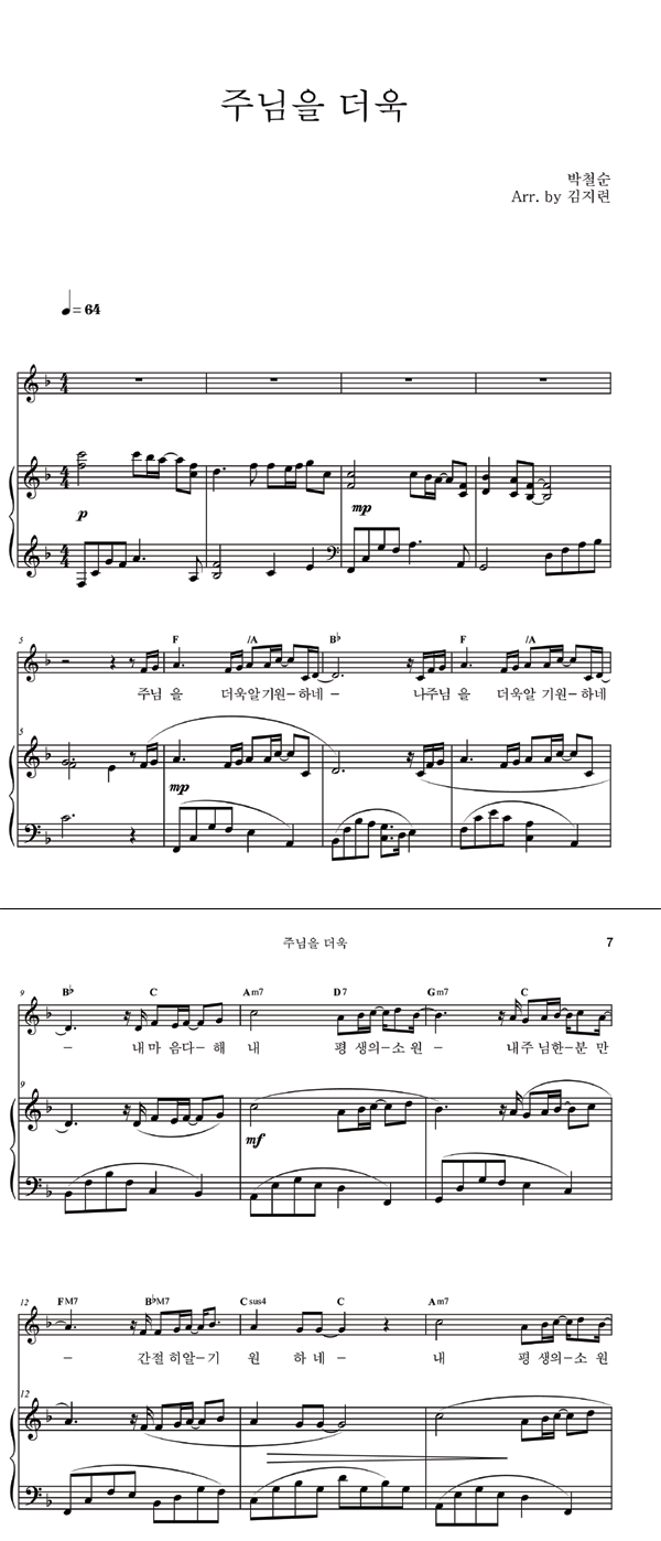 | 주님을 더욱 | 성가 2부 + 피아노 반주 |