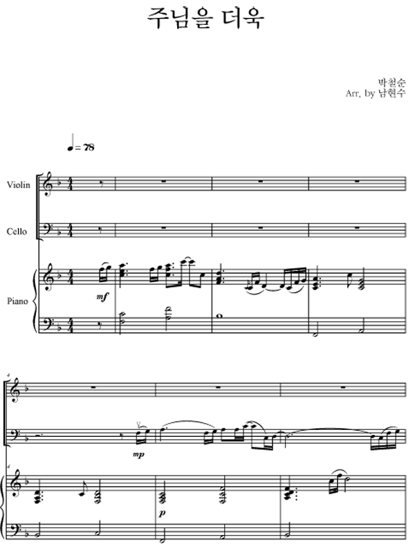 | 주님을 더욱 | 성가 4부 + 피아노 반주 |