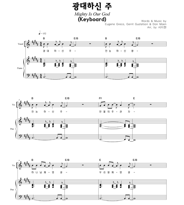 | 영광의 왕께 다 경배하며 | 성가 4부 + 피아노 반주 |