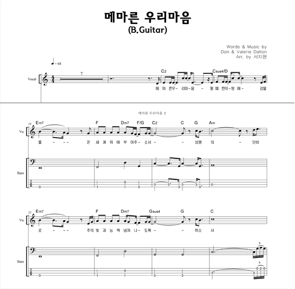 '메마른 우리 마음' 의 다른 악보형식