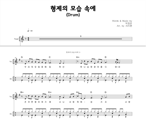 '형제의 모습 속에' 의 다른 악보형식