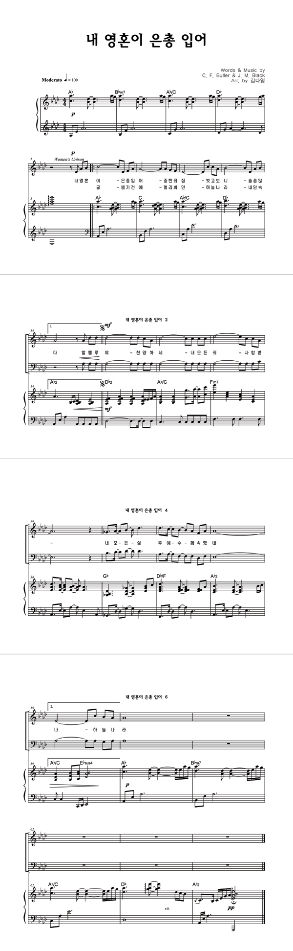 | 내 영혼이 은총 입어 | 성가 4부 + 피아노 반주 |