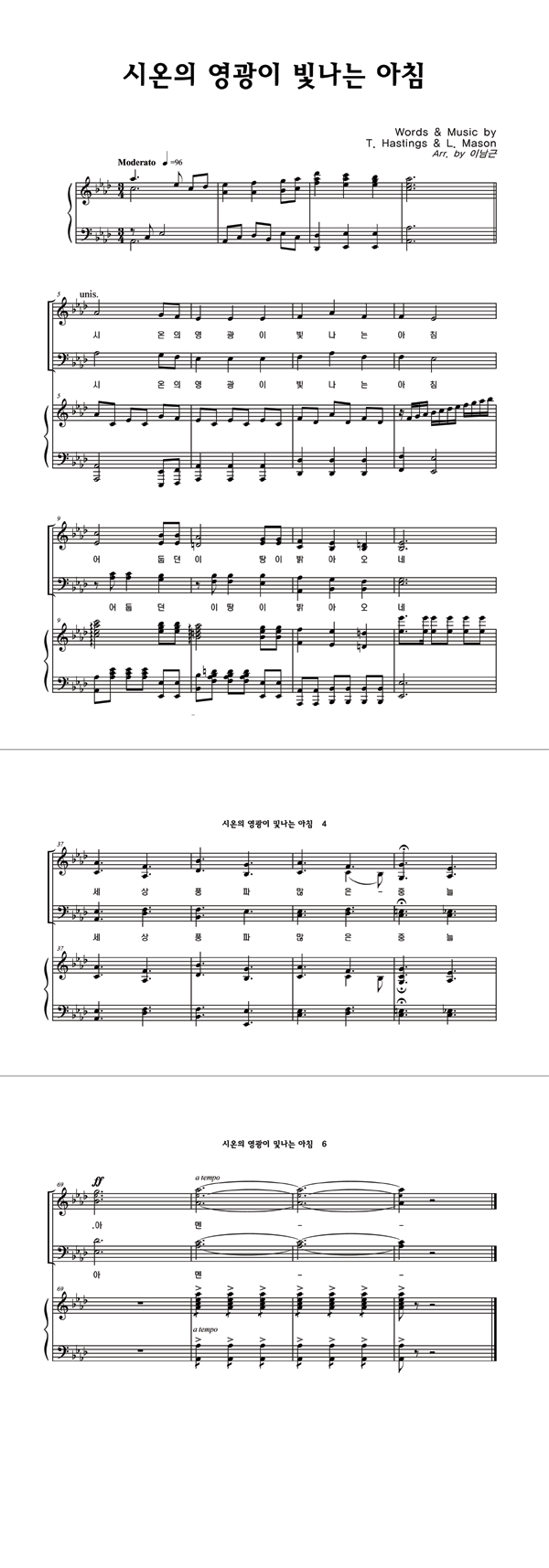| 시온의 영광이 빛나는 아침 (전용희 편곡) | 성가 4부 + 피아노 반주 |