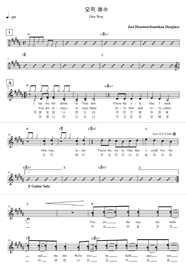 | 오직 예수 | 성가 4부 + 피아노 반주 |