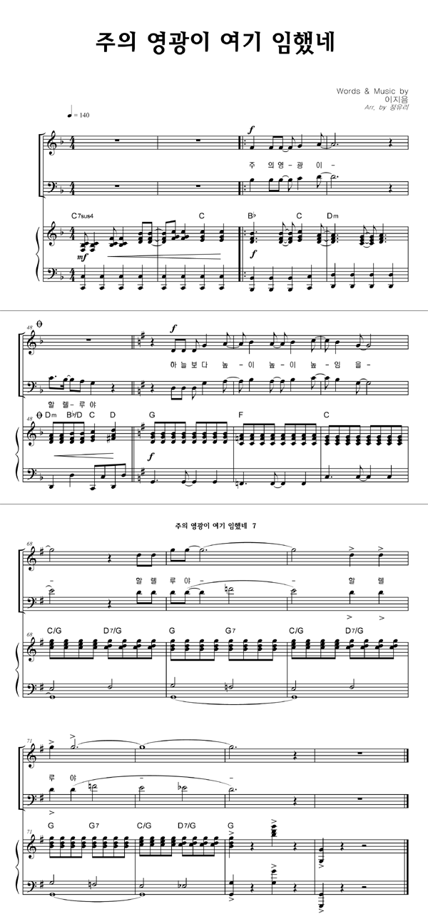 | 주의 영광이 여기 임했네 | 성가 3부 + 피아노 반주 |