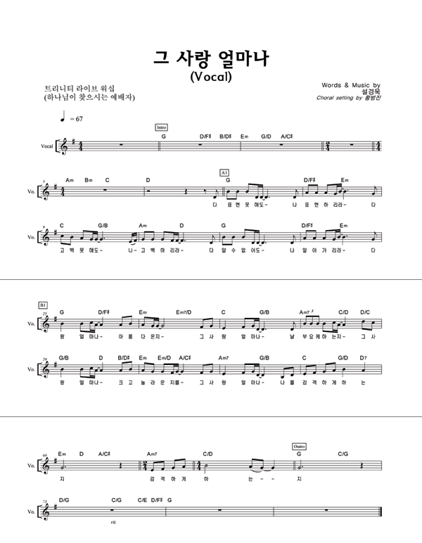 | 그 사랑 얼마나 | 성가 4부 + 피아노 반주 |