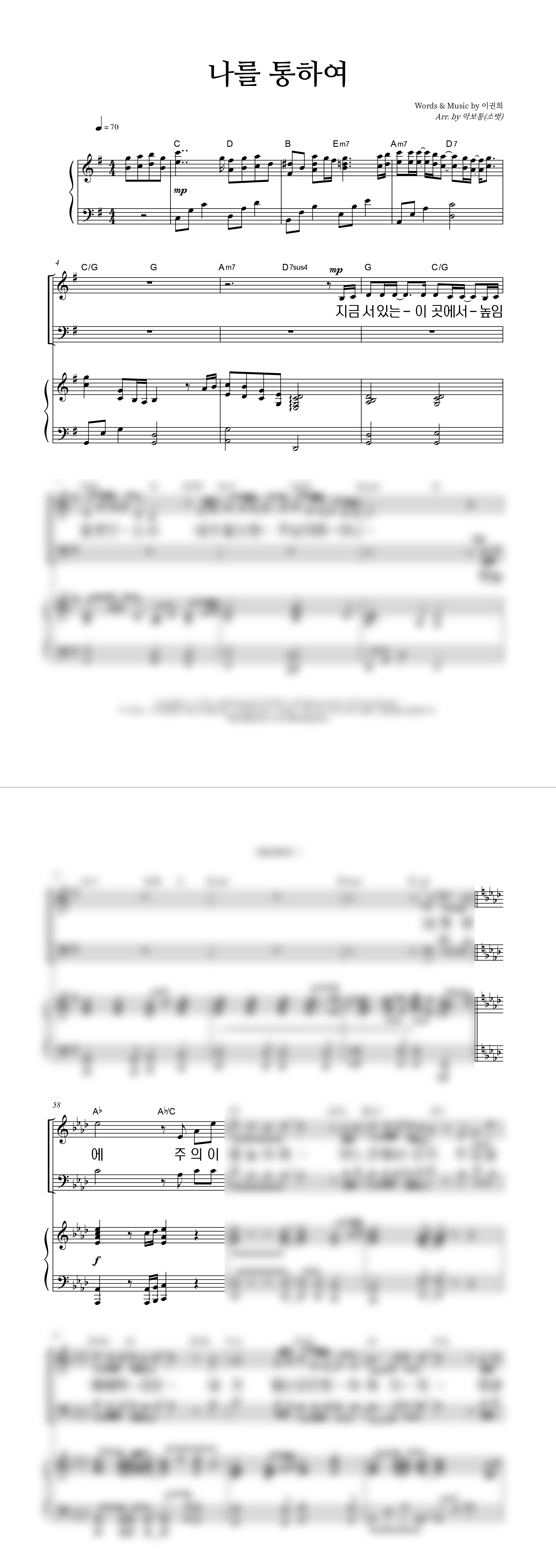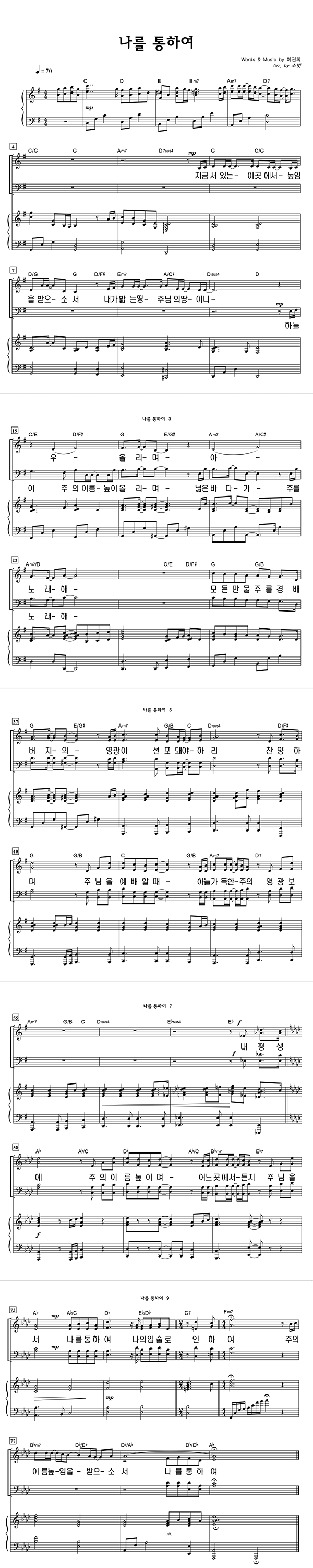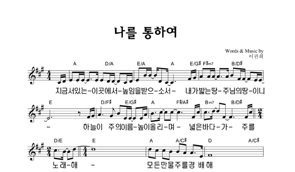 | 나를 통하여 큰글씨 | 성가 4부 + 피아노 반주 |