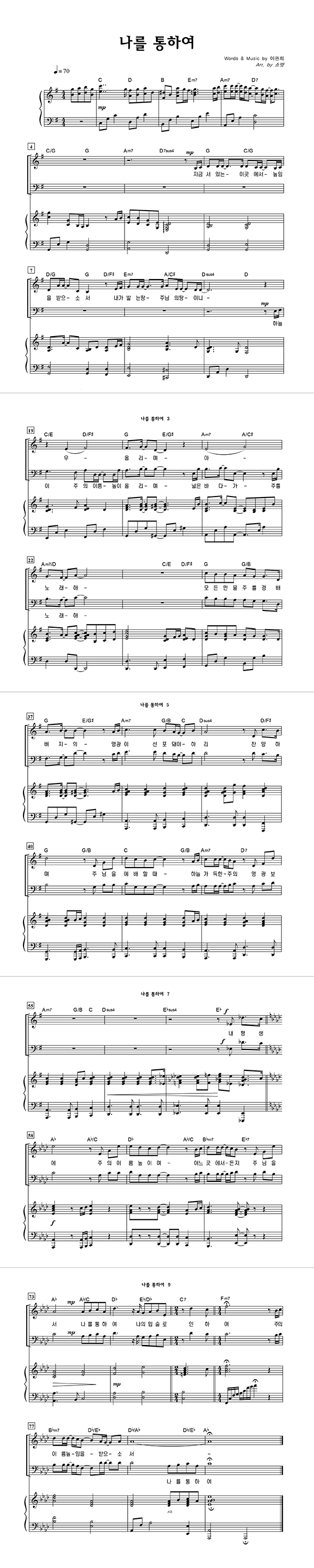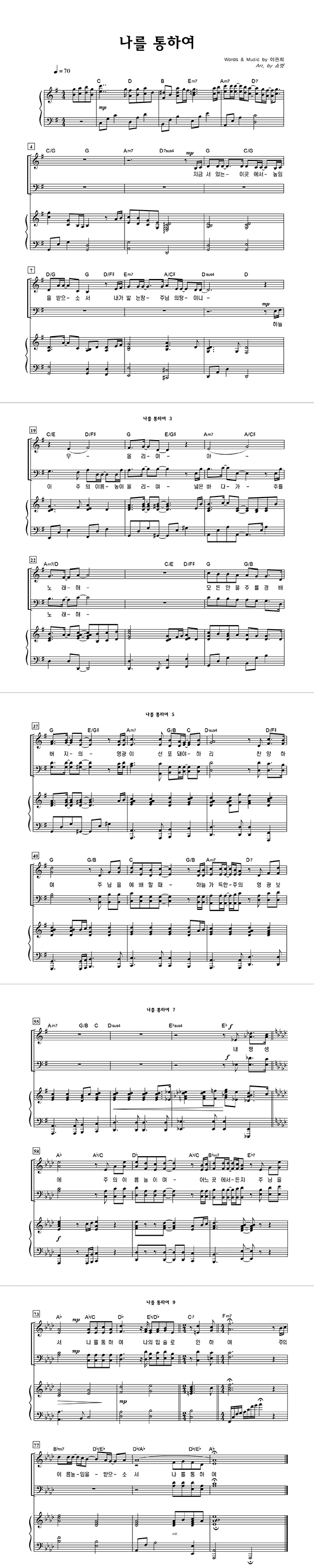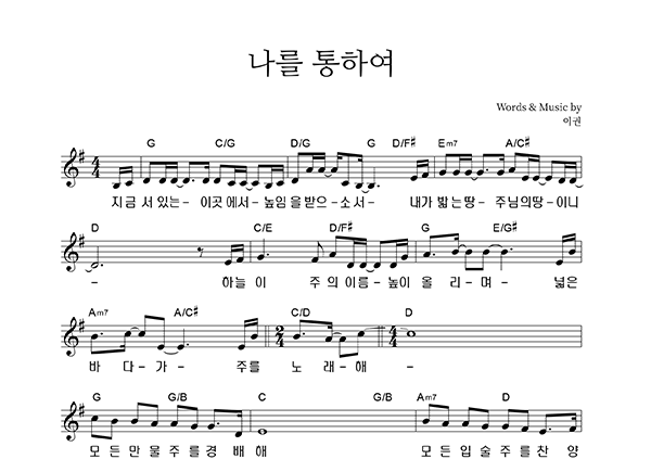 | 나를 통하여 | 성가 2부 + 피아노 반주 |