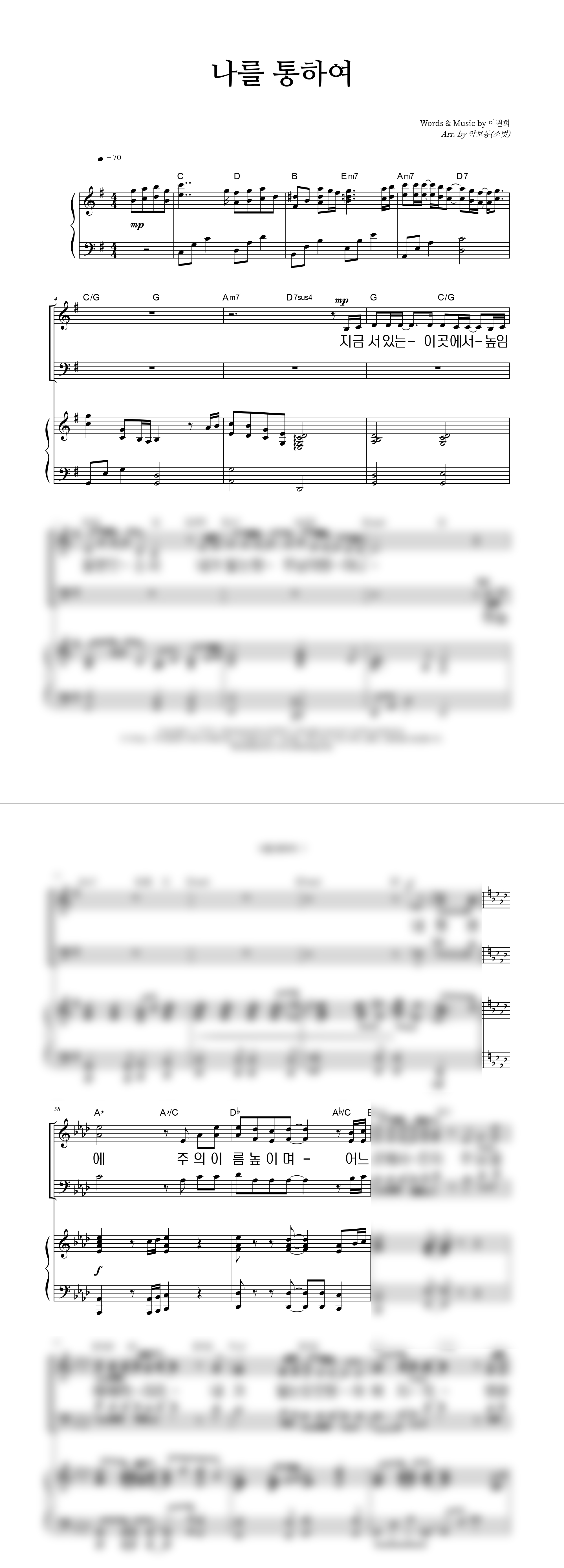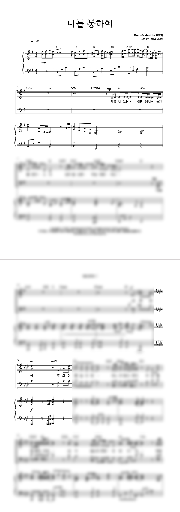 | 나를 통하여 | 성가 4부 + 피아노 반주 |