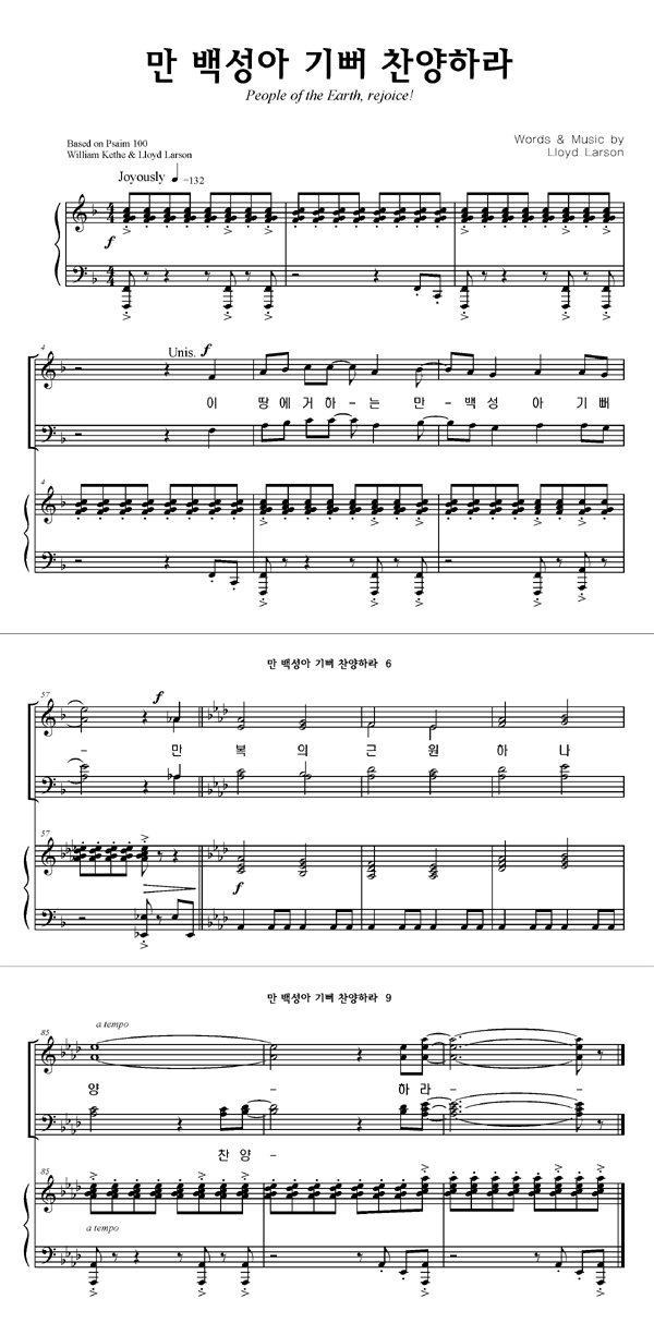 '만 백성아 기뻐 찬양하라' 의 다른 악보형식