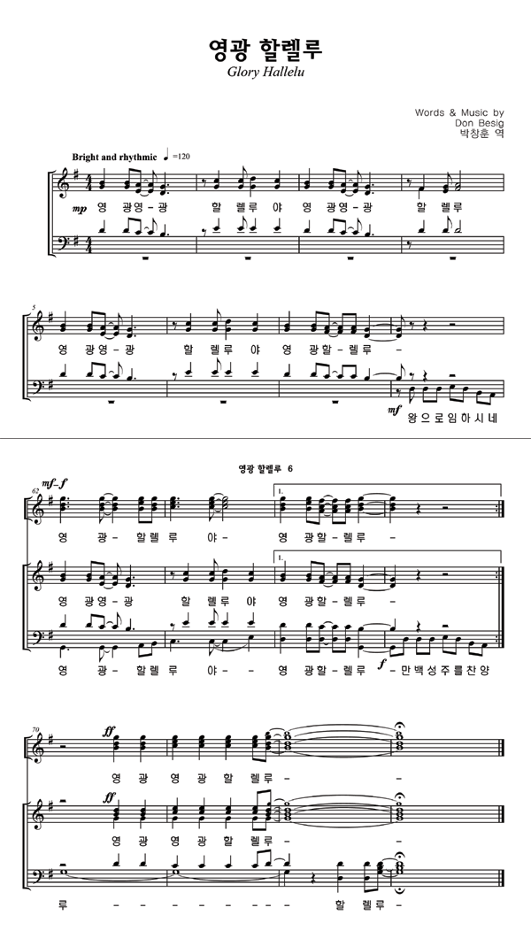 '영광 할렐루' 의 다른 악보형식