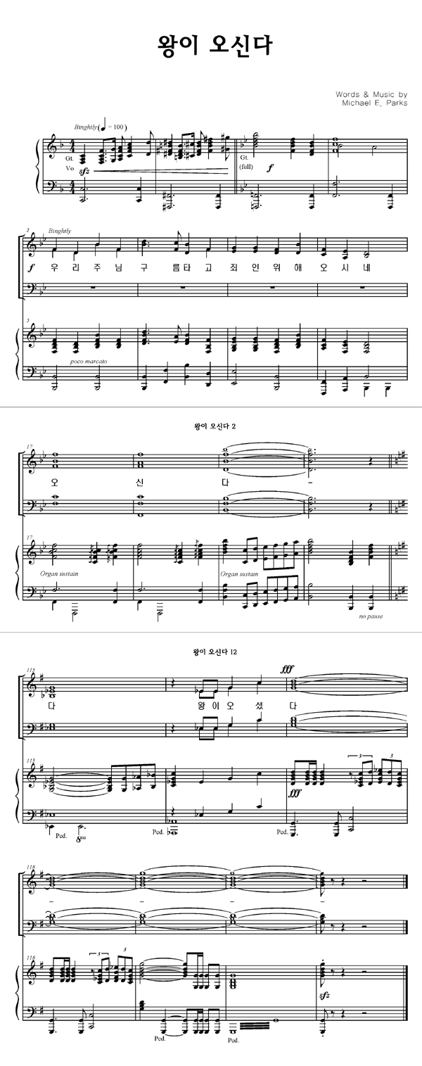 '왕이 오신다' 의 다른 악보형식