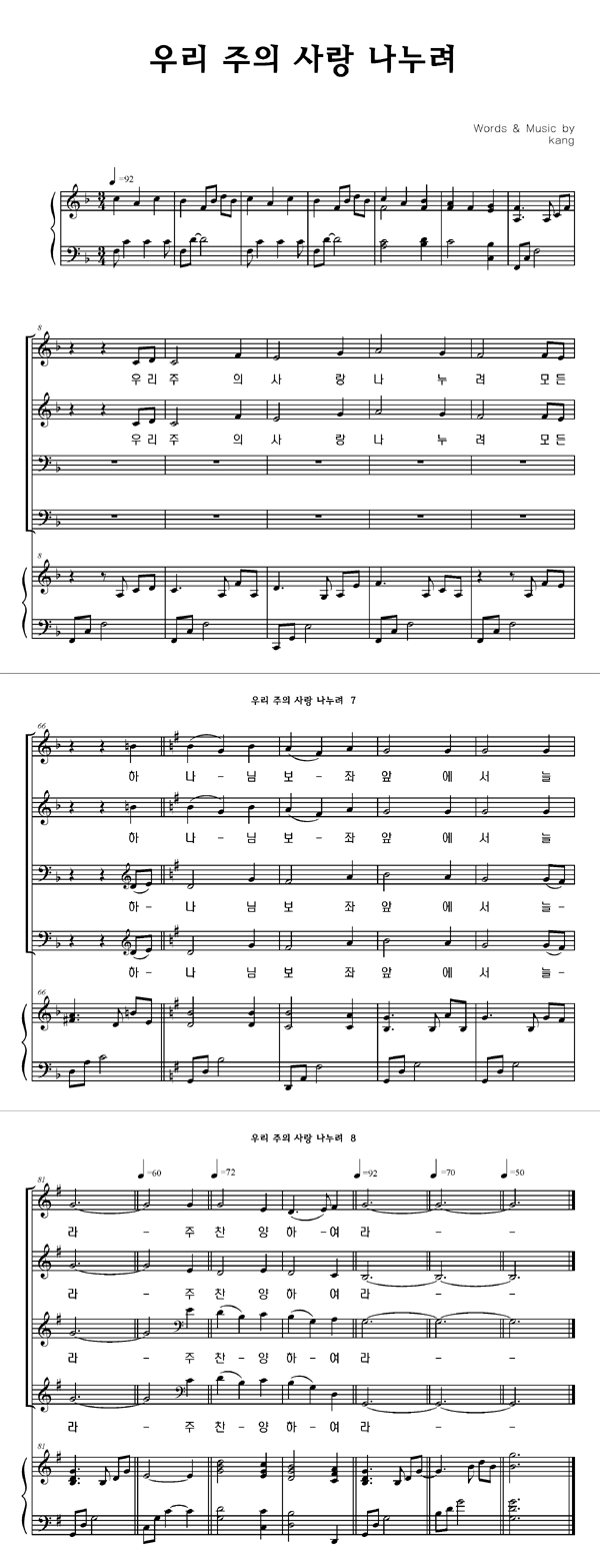 '우리 주의 사랑 나누려' 의 다른 악보형식