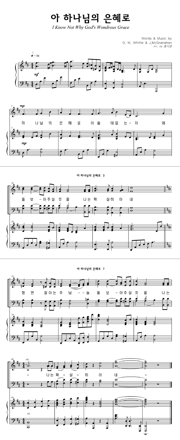 | 아 하나님의 은혜로 (찬송가 310장) | 성가 3부 + 피아노 반주 |